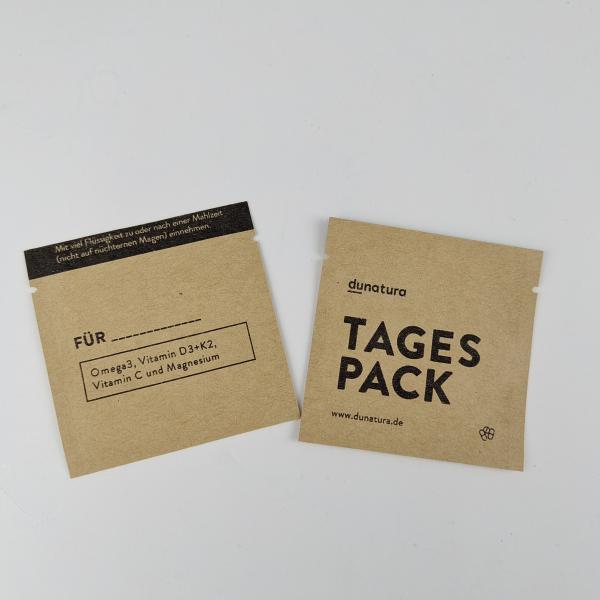 Custom Printing Biodegradable Small Sachet For Tages Pack Patches Kraft Paper 3 Side Sealed Packaging